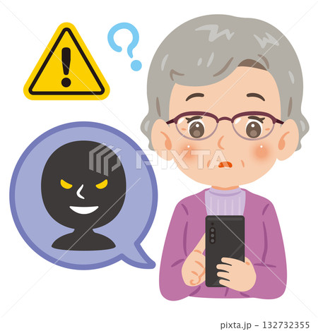 一位老年婦女因智慧型手機出現經濟困難,圖中則是她的上半身插圖。
