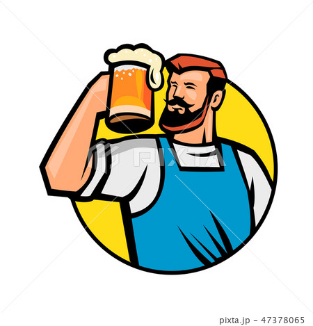 Bearded Hipster Toasting Beer Mug Circle Mascot