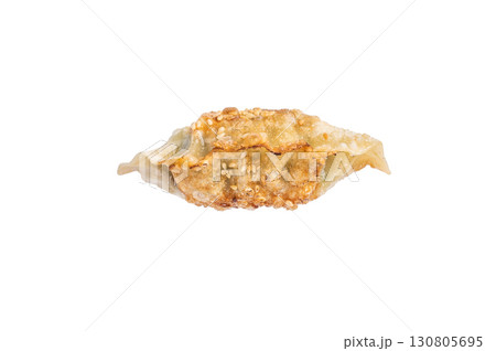 Fried Japanese Gyoza Dumplings with meat and vegetables isolated on white background. top view