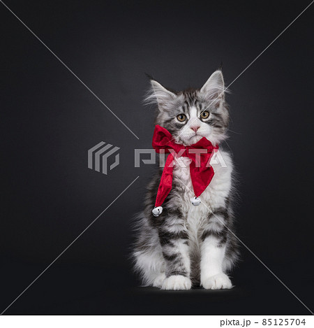 Maine Coon with bow tie on black background