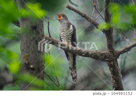 嘰嘰喳喳的 Hototogisu 棲息在樹枝上