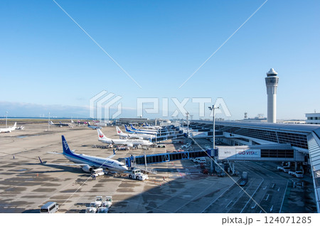從中部國際機場眺望新特麗亞 Sky Deck、控制塔和停放的國內客機