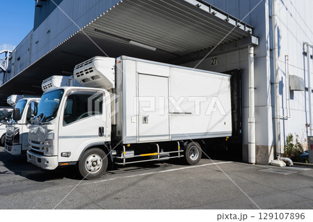 物流倉庫的裝卸大門、卡車連接點以及右側的2號貨架