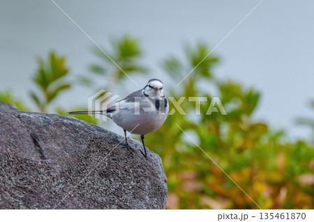 白鶺鴒站在岩石上,野鳥肖像,自然背景