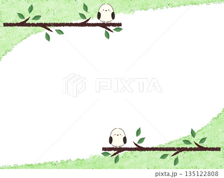 兩隻長尾山雀棲息在冬青水彩插圖上