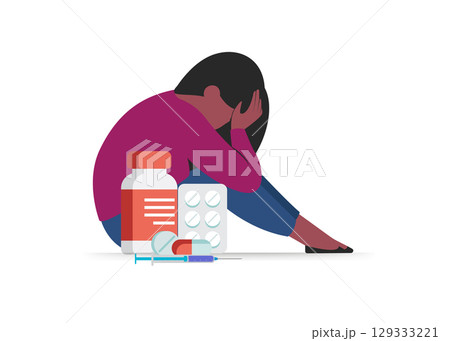 Young Depressed Woman Suffering From Drug Addiction stock illustration