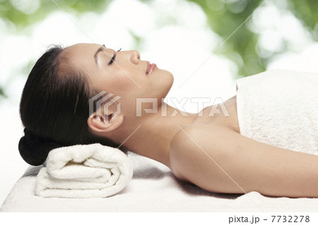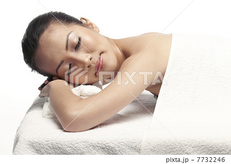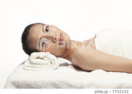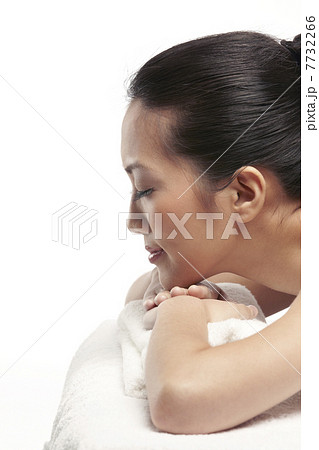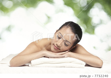 Young woman getting back massage at the spa. Hands of the masseur on the female back.