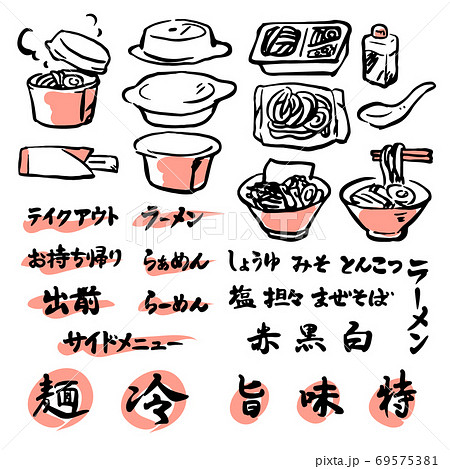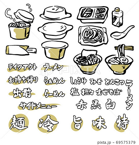 拉麵菜單外賣手繪徽標和插圖(彩色)
