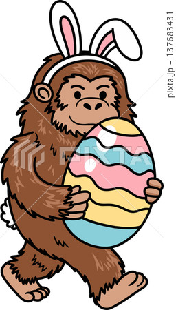 Bigfoot with Bunny Ears and Easter Egg Cartoon Illustration
