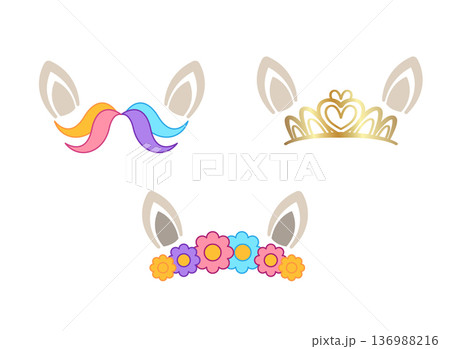 cute pony ear headbands with colorful hair and golden tiara flower crown set for girls party accessory and birthday celebration decoration