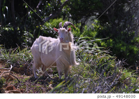 我在森林裡與一隻野生日本鬣羚四目相對。