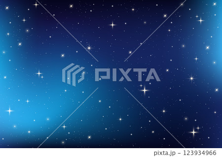 Starry night sky. Dark blue space. Vector magic universe illustration. Abstract winter gradient with sparkles. Bright cosmic wallpaper with glitter. Outer space realistic backdrop