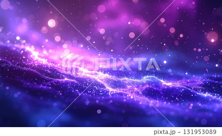 A vibrant cosmic swirl of glowing blue and purple particles, creating a deep and mystical space effect