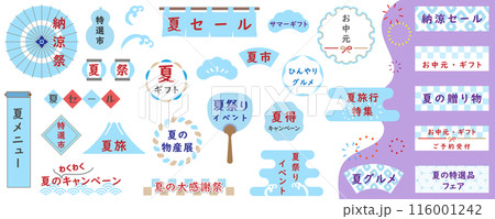清爽涼爽的淺藍色夏季日式框架集向量插畫白色背景、橫幅、模板