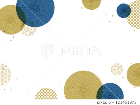 以梅花和日本傘為主題的節日包裝紙風格的背景框架插圖