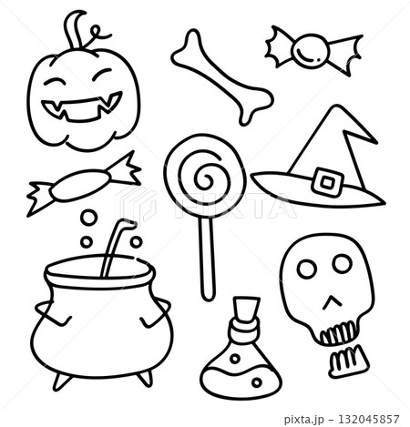 Simple and fun set of hand-drawn line art doodle icons for Halloween.. Vector Illustration