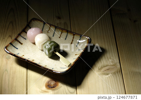 紅色小盤子和紅白魚糕水彩風格手繪插畫
