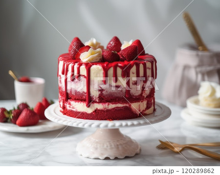 Strawberry sponge cake with fresh strawberries. Generative AI