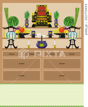 沖繩縣舊盂蘭盆節中佛壇的圖像插圖