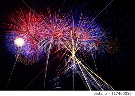 Patriotic red, white, and blue scene, isolated on white, PNG