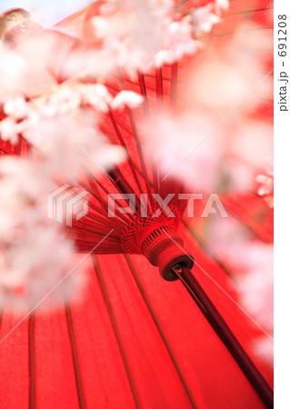 賞櫻形象、賞櫻勝地、櫻花與日本傘景觀、春天的京都景觀、春天的平野神社、野館笠與櫻花