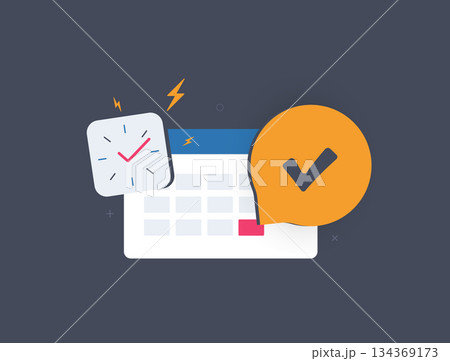 Deadline time management - task scheduling productivity. Planning efficiency calendar with reminder alarm clock. Deadline management tool project workflow tracking meeting goals. Vector illustration