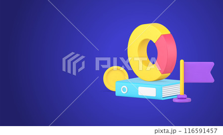 Analyzing company working checking profit with folder documents and rounded graph 3d icon
