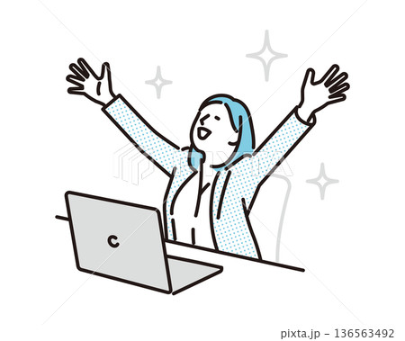 穿著工作服的女人舉起雙手很高興