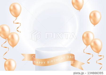 橘粉金氣球及彩色盒裝白色產品展台,生日、情人節、母親節、婦女節、節日紀念日,日本廣島公告宣傳資料