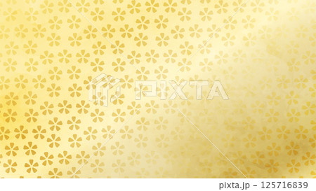 日本背景:金色小櫻花,散落的櫻花圖案