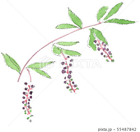 水彩畫描繪了從初夏到夏季的植物、路邊和田野裡生長的美洲商陸(墨莓)的果實和花朵