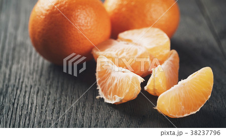 Fresh cut of Mandarin orange fruit on plate ready to eating