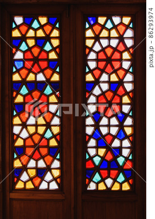 Stained glass window of Khan's Palace in Bakhchysarai. Crimea