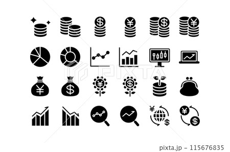 與投資和股票/金錢/基金相關的圖標矢量圖素材