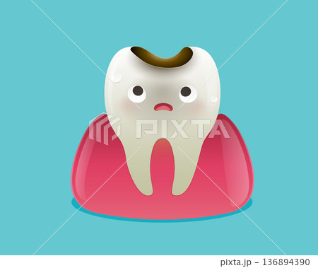 Tooth Decay Cartoon Character with Toothache and Sensitivity Pain