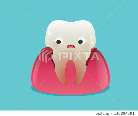 Bleeding Gums Cartoon Tooth Character with Gingivitis Pain