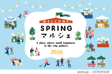 市集活動場景:熙熙攘攘的露天市集上的橫幅。