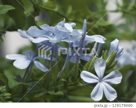 藍白相間的茉莉花,淡藍色的花朵和花蕾令人心曠神怡