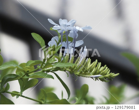 一簇藍白相間的花簇優雅地垂下。