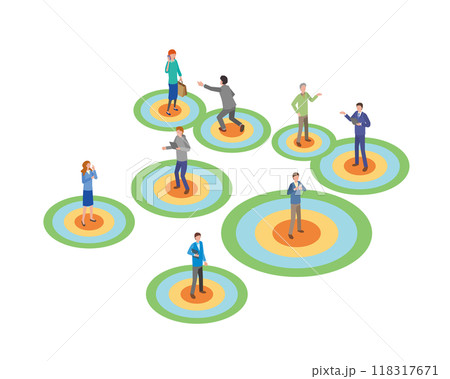 欺詐使用智能手機的蒼白女性和持有卡片的壞人的圖像插圖素材