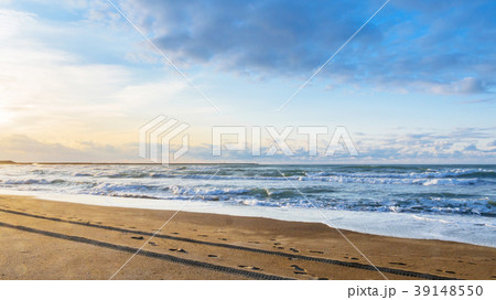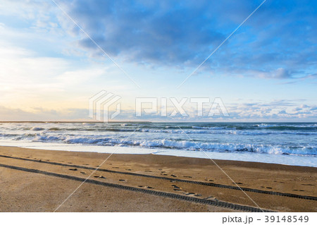 石川縣夏日晴朗的天空和自行車賽道的風景 | 凱林賽圖片 | 石川縣河北郡內灘町