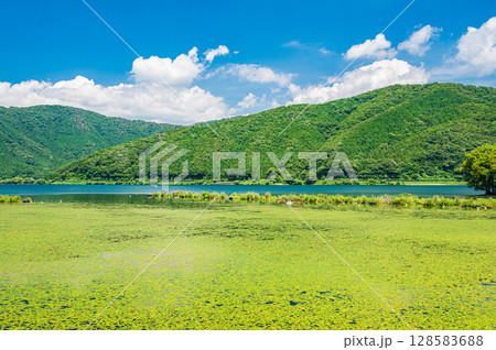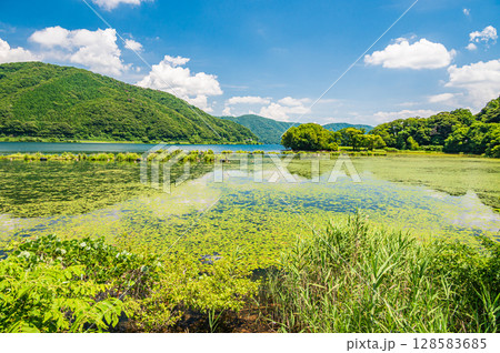 滋賀縣長濱市奧久市琵琶湖湖面水生植物