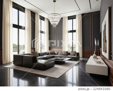 Modern luxury living room with large windows
