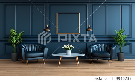 Modern Living Room with Blue Walls and Elegant Furniture Showcase