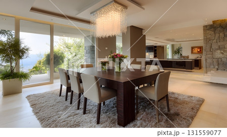Stylish dining room interior with uncluttered arrangement