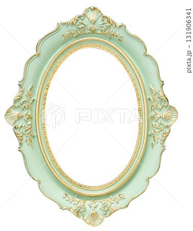 白色背景上帶有金色裝飾的薄荷綠色橢圓形裝飾古董相框