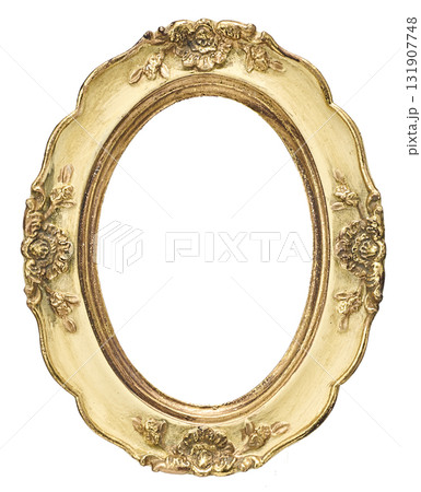 橢圓形古董金色相框,白色背景上有花卉裝飾