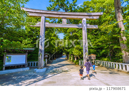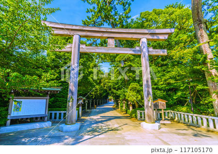 日本寒川城市景觀,相模國一宮寒川神社。植樹紀念天皇陛下和皇后陛下的禮物 = 2020年7月21日