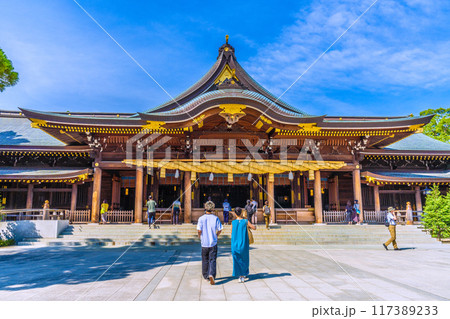 日本寒川市容、相模國一宮 寒川神社、本宮(左後)等景觀=2020年7月21日