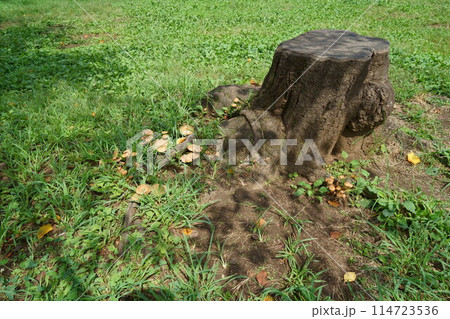 公園樹樁上生長的蘑菇